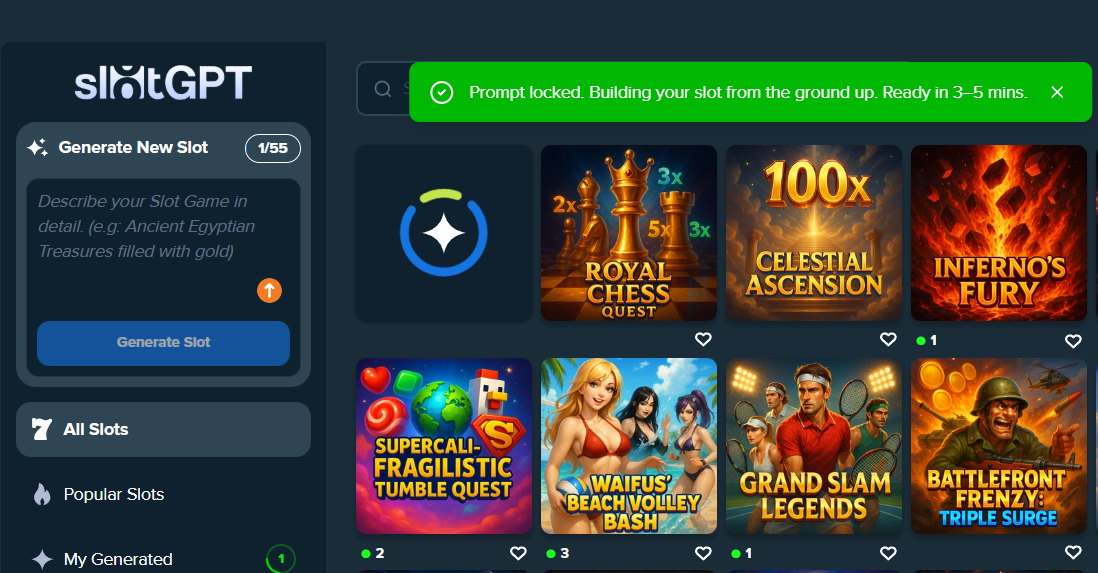 SlotGPT превратит вашу идею в реальный слот с механиками и вашими изображениями.